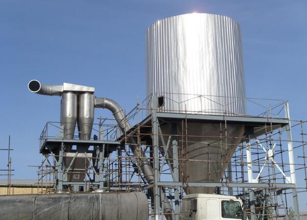 A:采用冷空气吹扫,在塔筒切线方向引入冷空气,吹扫易发生粘壁的部位,也可以沿塔内壁安装一根可以旋转的喷气管,经过过滤的空气通过风机送入吹扫杆内,依靠其在干燥室内围绕塔壁旋转并同时上下运动进行吹扫,以此减少因干粉末附着而引起的粘壁现象。